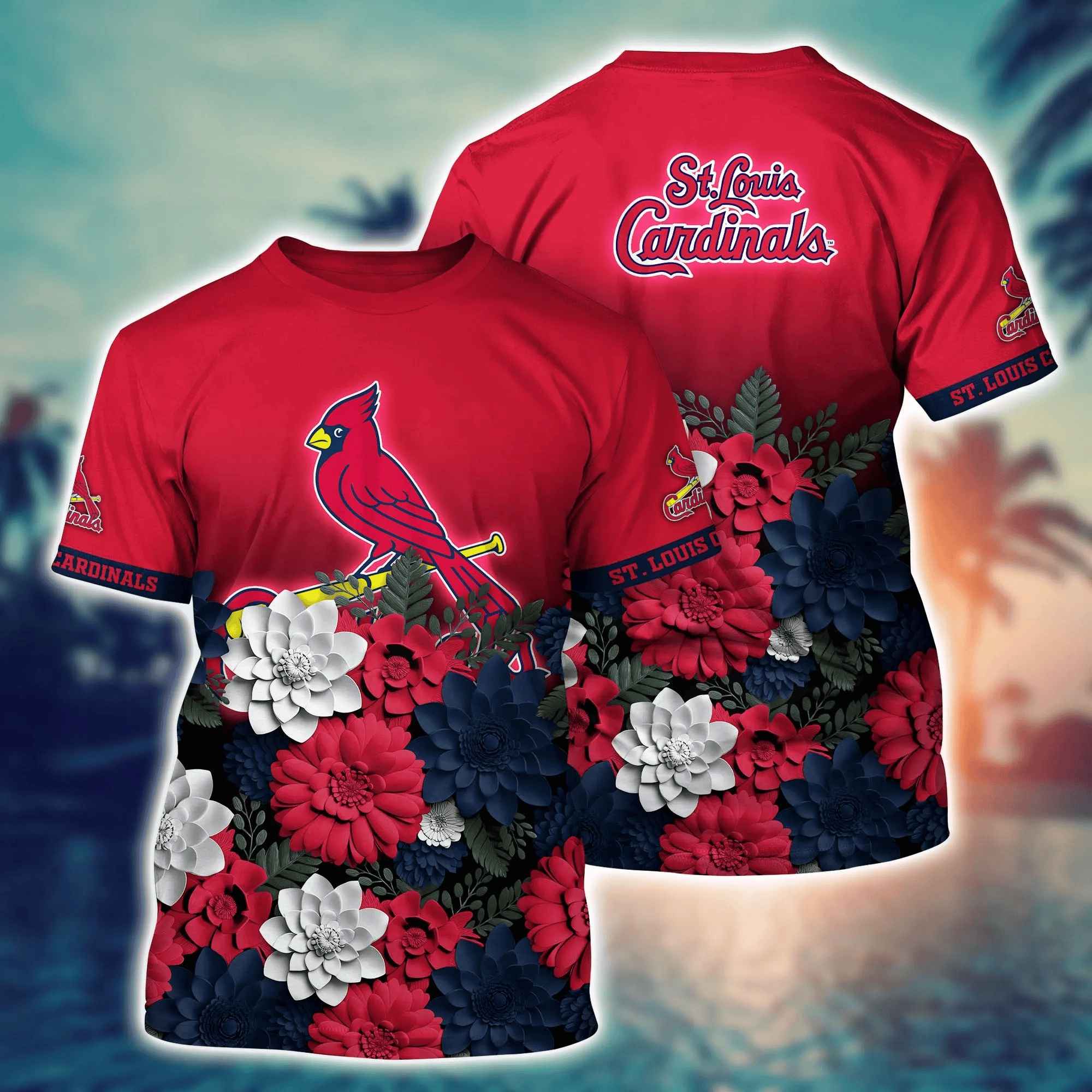 St. Louis Cardinals Flower 3D Button Hawaii Shirt Gift for Men Dad Father And T Shirt For Fans, Summer Football Shirts