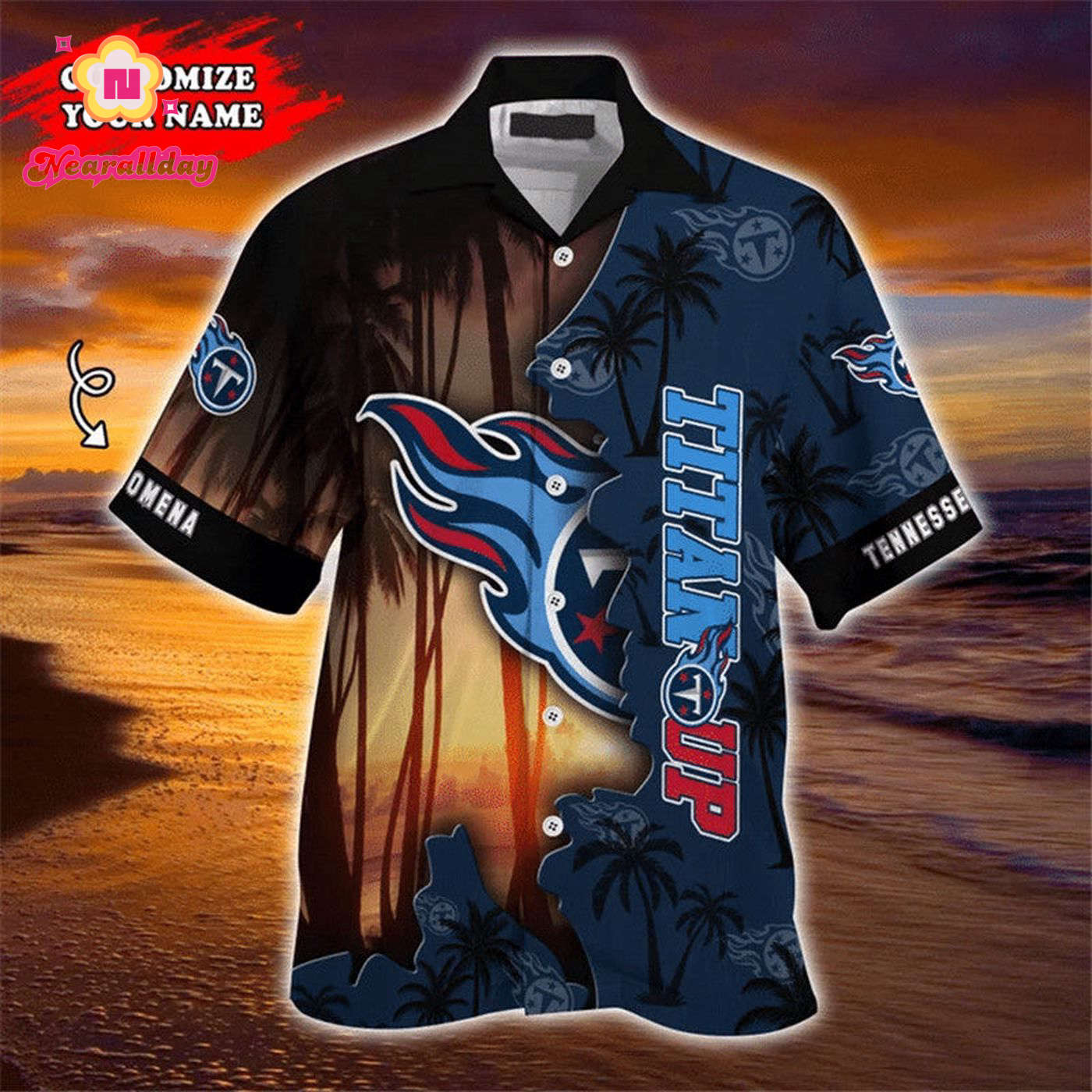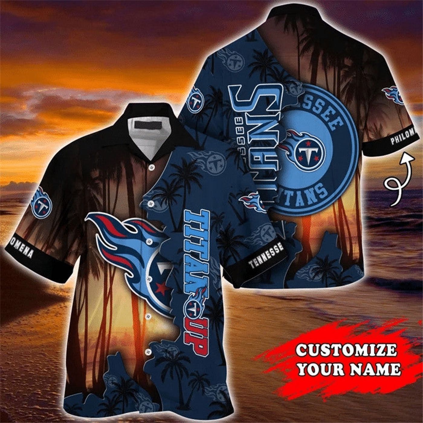 Elevate your game day style with the Tennessee Titans Hawaiian Shirt customized with your name. Made from premium materials, this shirt features vibrant team colors and logo. Stand out in the crowd and show your team pride in a unique and personalized way.
