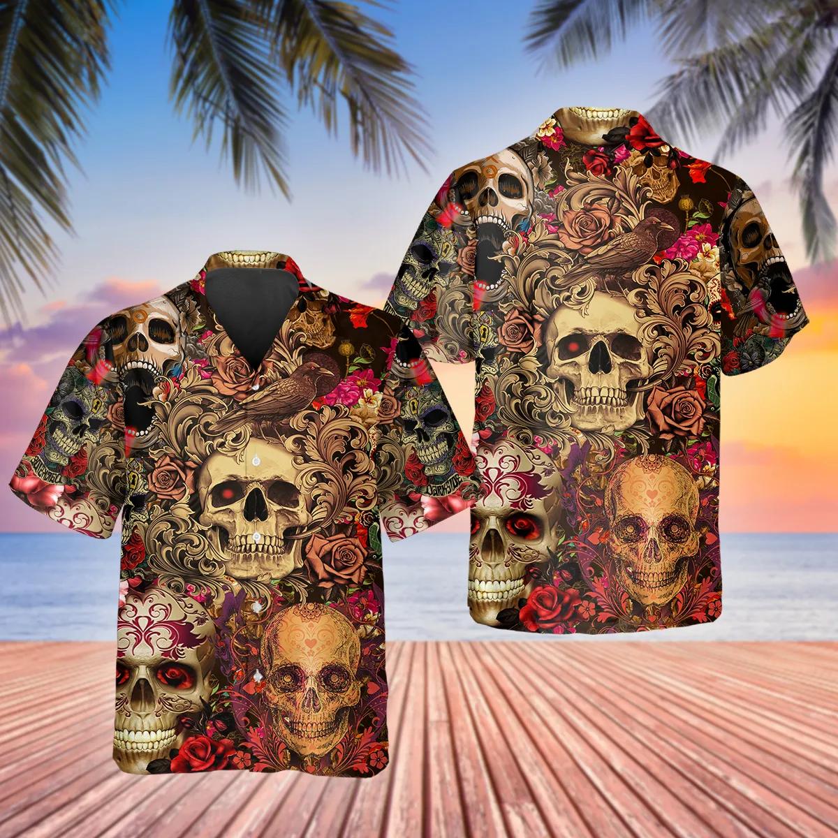 About Vintage Flower Skull Hawaiian Shirt Skull Aloha Shirt information: